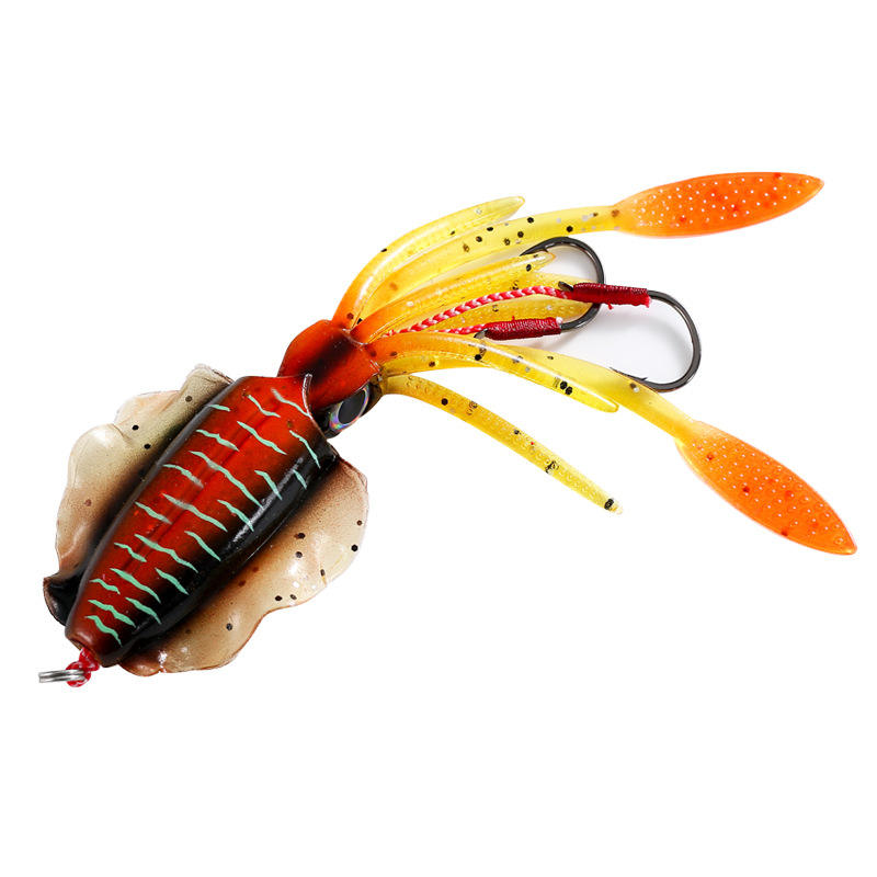 15cm 60g UV Luminous Soft Squid Jig Lure with Lead Head Silicone Octopus Bait for Deep Sea/River Fishing Bionic Squid Skirt Lure