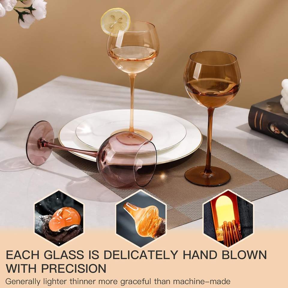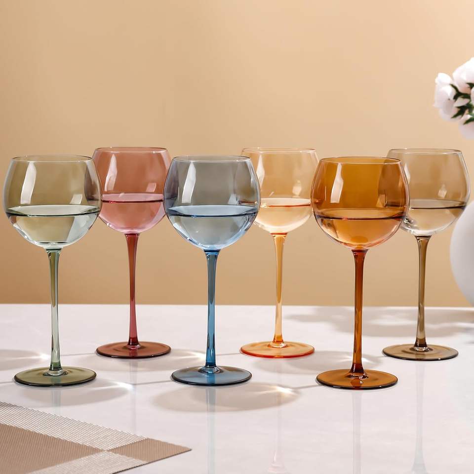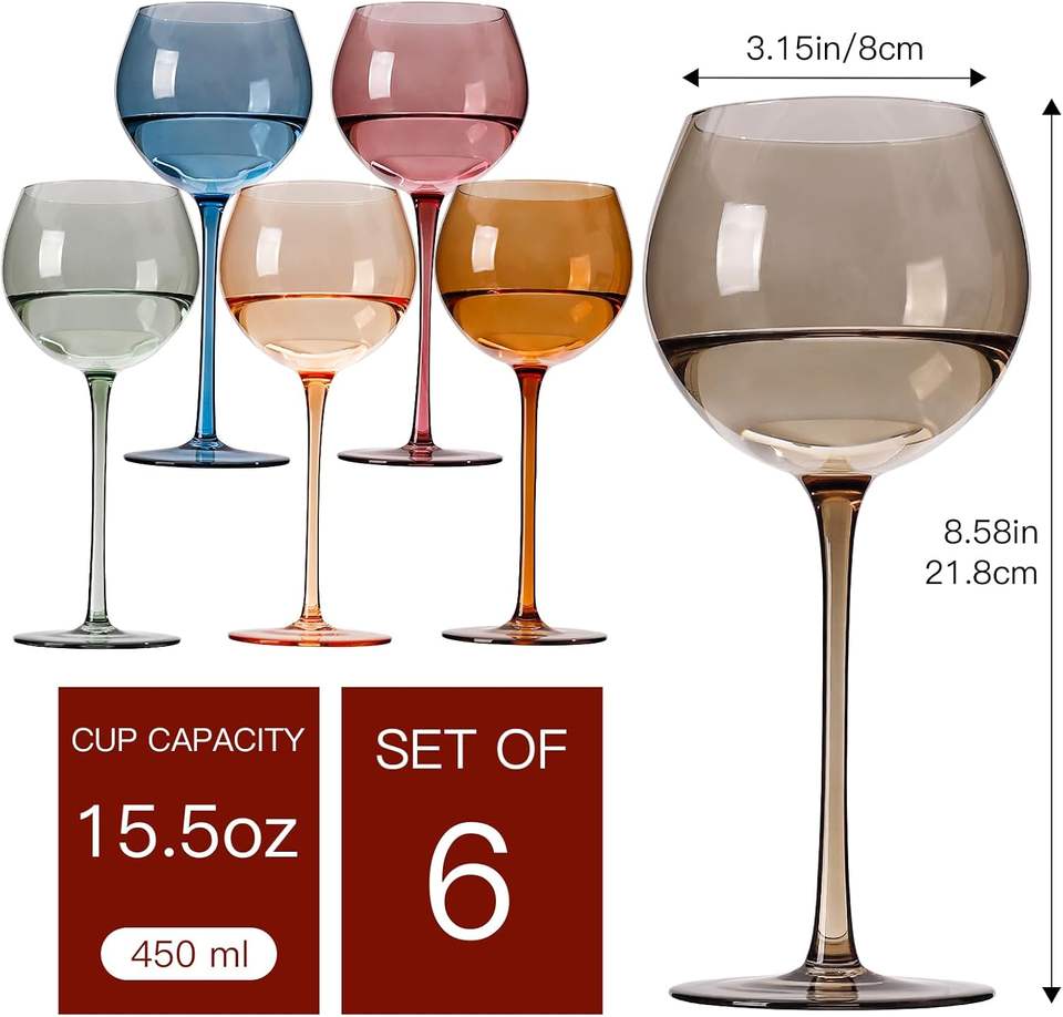 15oz Hand Blown Colorful Crystal Glassware Balloon Pink Amber Grey Green Colored Gin Wine Glasses