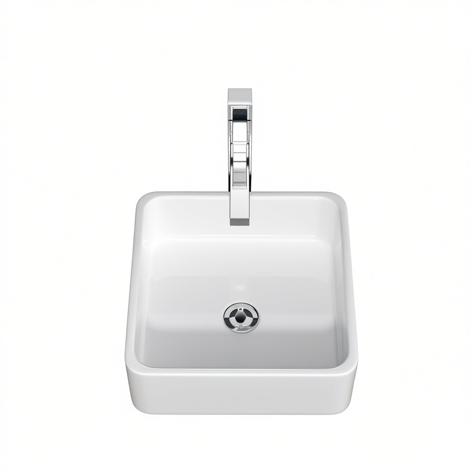 Lavabo da Bagno Quadrato in Ceramica Bianca 15x15 Pollici, Design Minimalista, Installazione a Foro Singolo