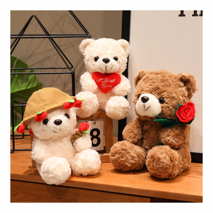16/25cm Super Soft Stuffed Teddy Bear Hugging Rose Hat Rose Flower Heat I LOVE YOU Plush Teddy Bear for Valentine's Day