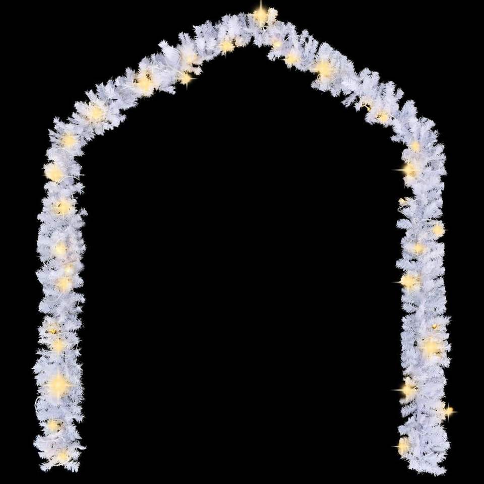 Ghirlanda Natalizia in PVC Bianco Lunga 5 Metri con Luci, Elegante Corona per Decorazioni Festive