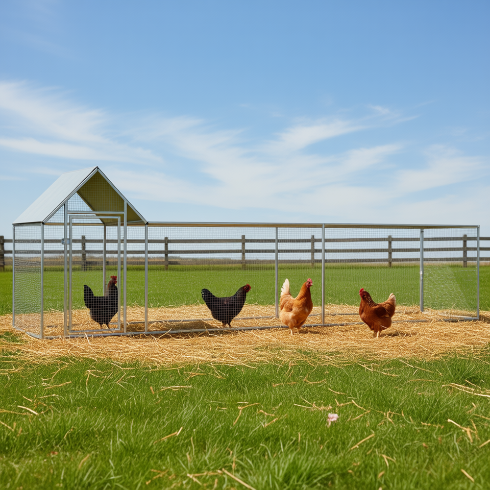 New Chicken Coop 16.4'x3.3'x4.9' Stainless Steel with Long Service Life for Chicken Farm Use
