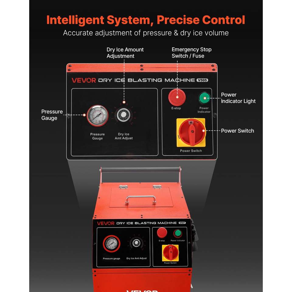 Macchina per Sabbiatura a Ghiaccio Secco con Capacità di 7,5 KG (16,5 LBS), Pressione Regolabile, 4 Ugelli, Pulitore Industriale a Ultrasuoni