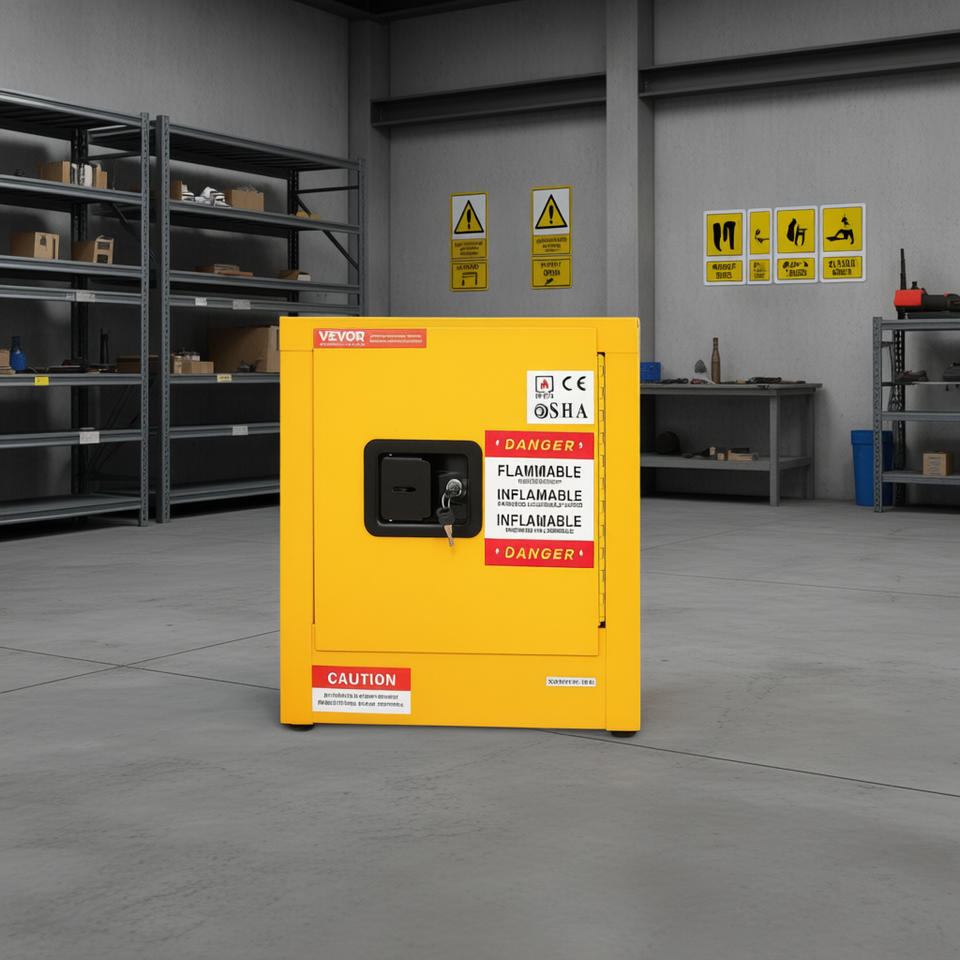 Flammable Storage Cabinet 16.9x16.9x18.2 In Galvanized Steel Adjustable Shelf Industrial Commercial Use