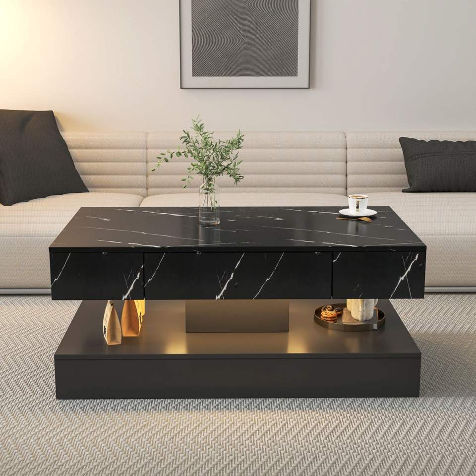 Tavolino da Caffè LED Alto 43 cm con Luci LED, Arredamento Moderno per Soggiorno, Grande Tavolo da Salotto per Casa