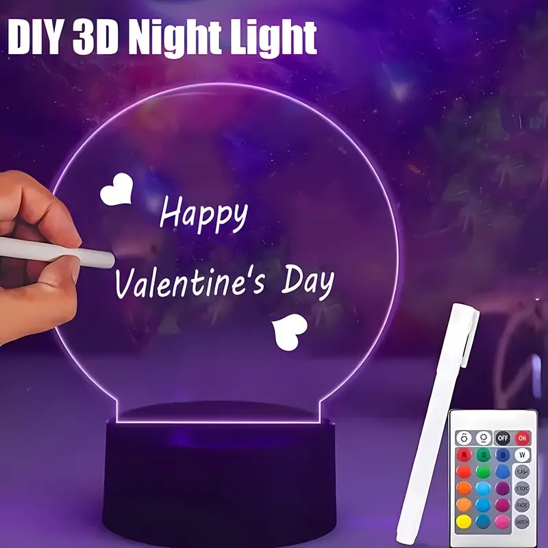 Base per Lampada con Display RGB a 16 Colori, Pannello Scrivibile e Cancellabile in Acrilico per Messaggi Fai-da-Te, Luce Notturna a Illusione LED 3D in Resina di Vetro