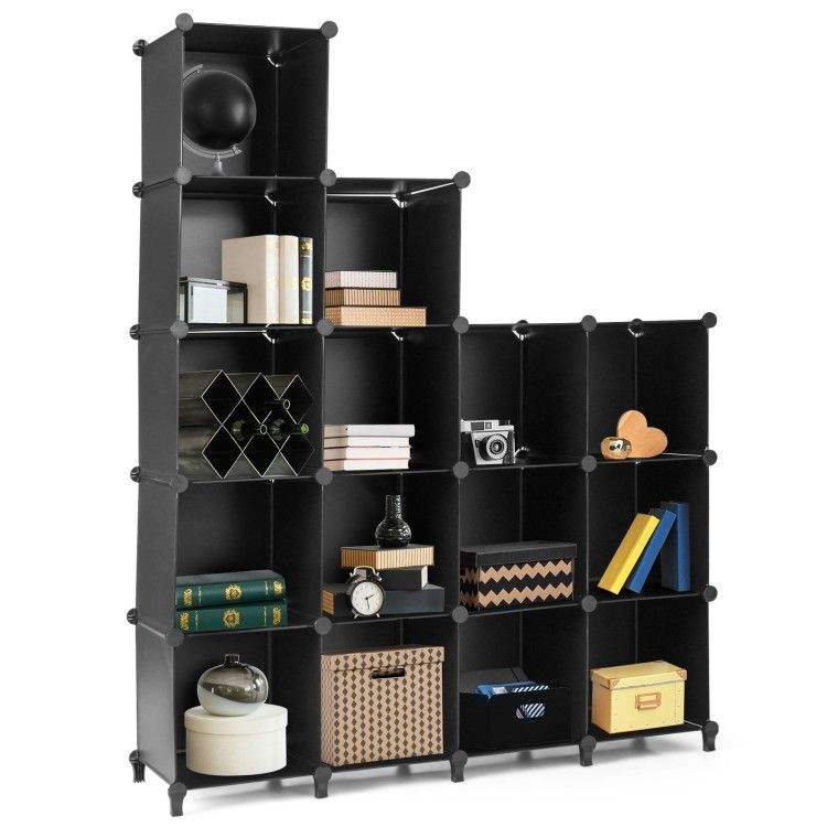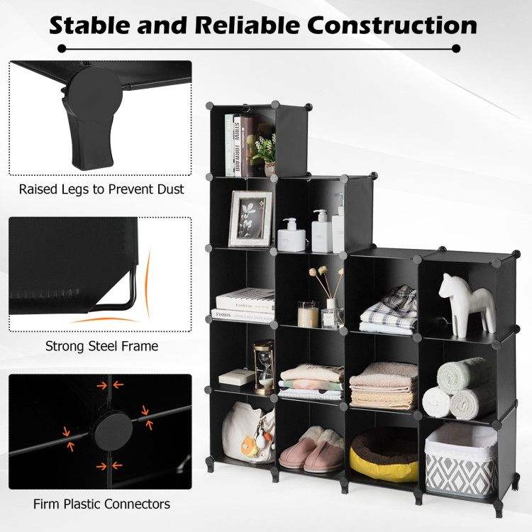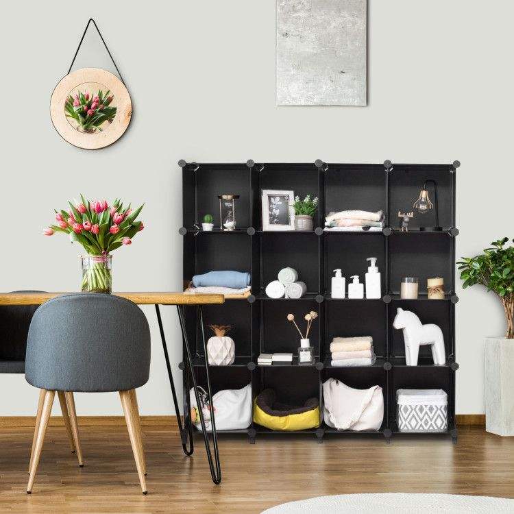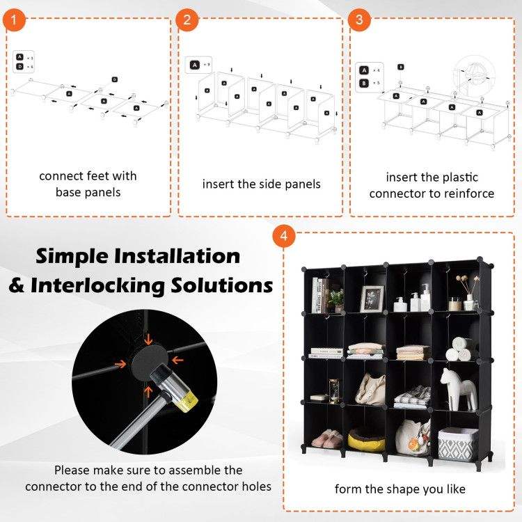 Organizzatore di Stoccaggio in Plastica a 16 Cubi con Telaio in Acciaio Antiruggine, Contenitori Cubici per Organizzazione