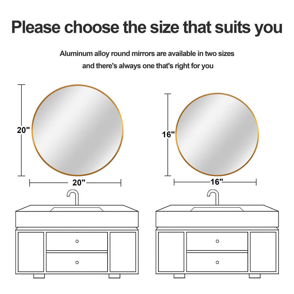Specchio da bagno decorativo con bordi sottili in lega di alluminio da 16 \ "elegante con Design smerlato rotondo specchio da parete oro