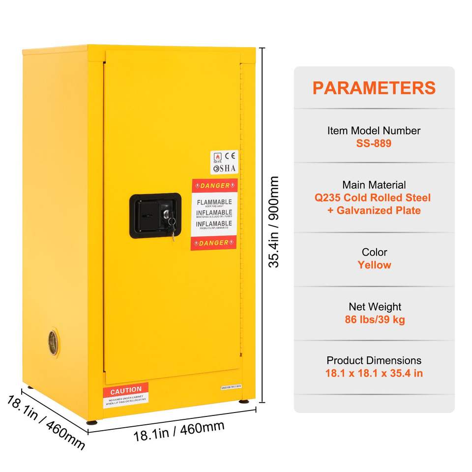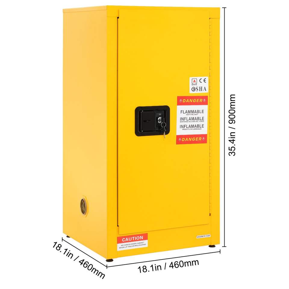 Armadio di Sicurezza Antideflagrante per Liquidi Infiammabili in Acciaio Laminato a Freddo da 16 Galloni 18,1 X 18,1 X 35,4 per Stoccaggio in Magazzino