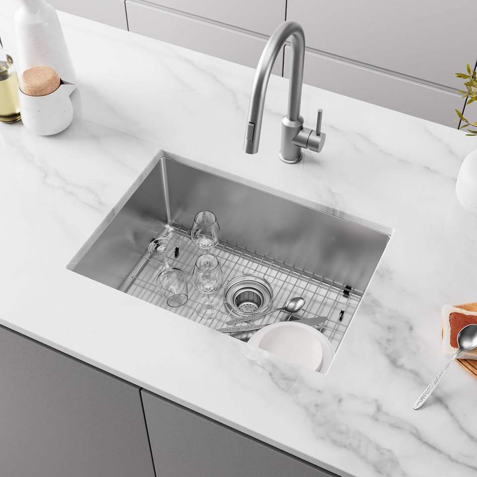 16 Gauge 304 Stainless Steel 27\"L X 18\"W Undermount Single Bowl Kitchen Sink with Sink Grid Premium Quality Kitchen Sinks