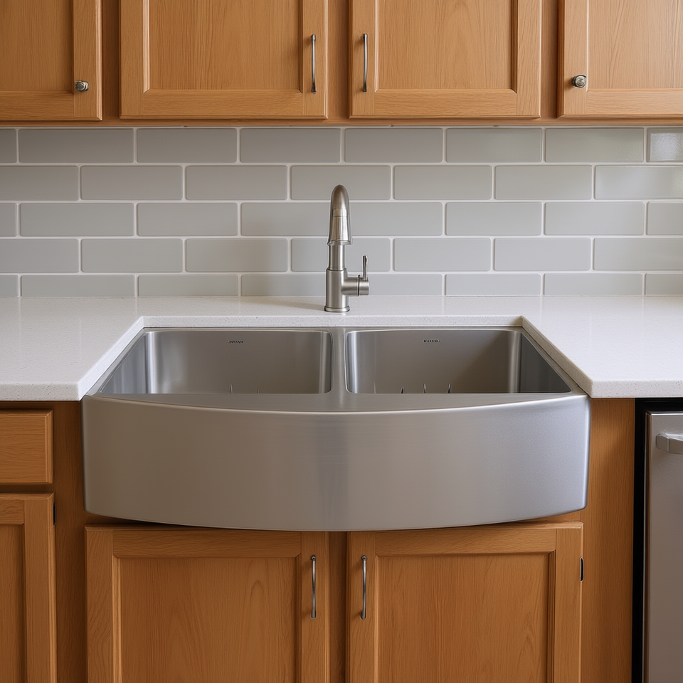 Lavello da Cucina a Doppia Vasca in Acciaio Inossidabile con Frontale a Grembiule, Stile Rustico, 33x21x10, Finitura Spazzolata, Facile da Pulire