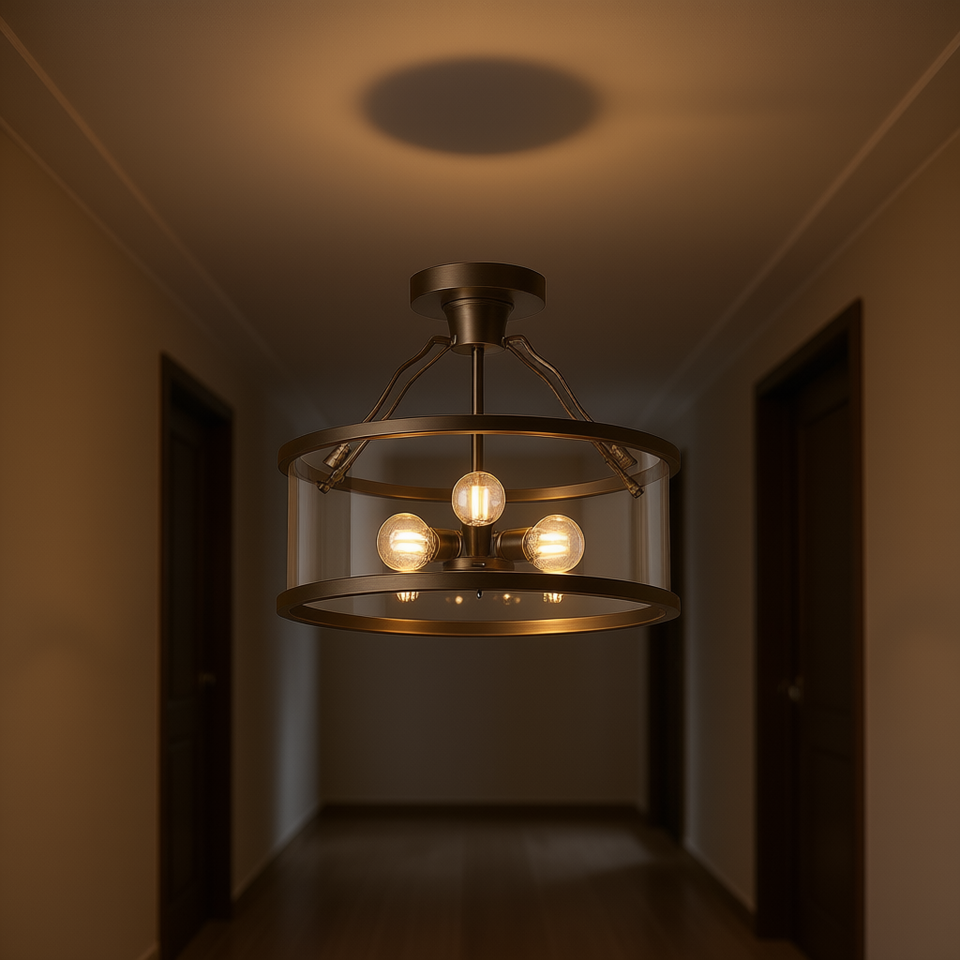 Plafoniera Moderna a 3 Luci da 16 Pollici con Paralume in Vetro e Ottone per Soggiorno