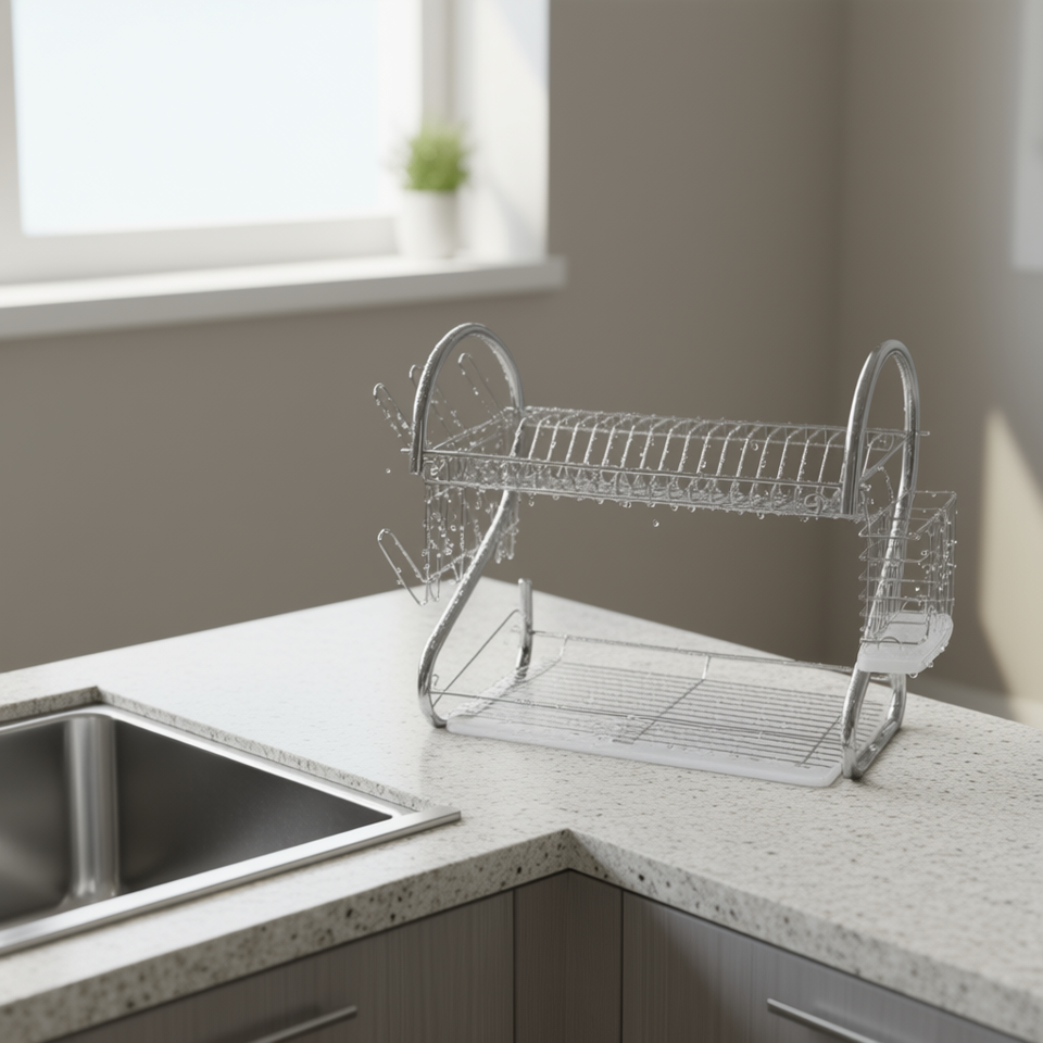 Scolapiatti a 2 livelli a forma di S da 16 pollici, cromato, per riporre in cucina