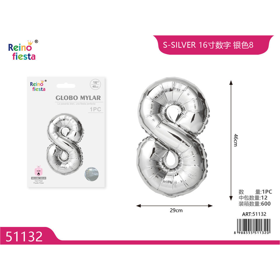 16 pollici argento numero 8 Mylar palloncino in alluminio lettere per feste decorazioni festa della mamma capodanno cinese Back eventi scolastici