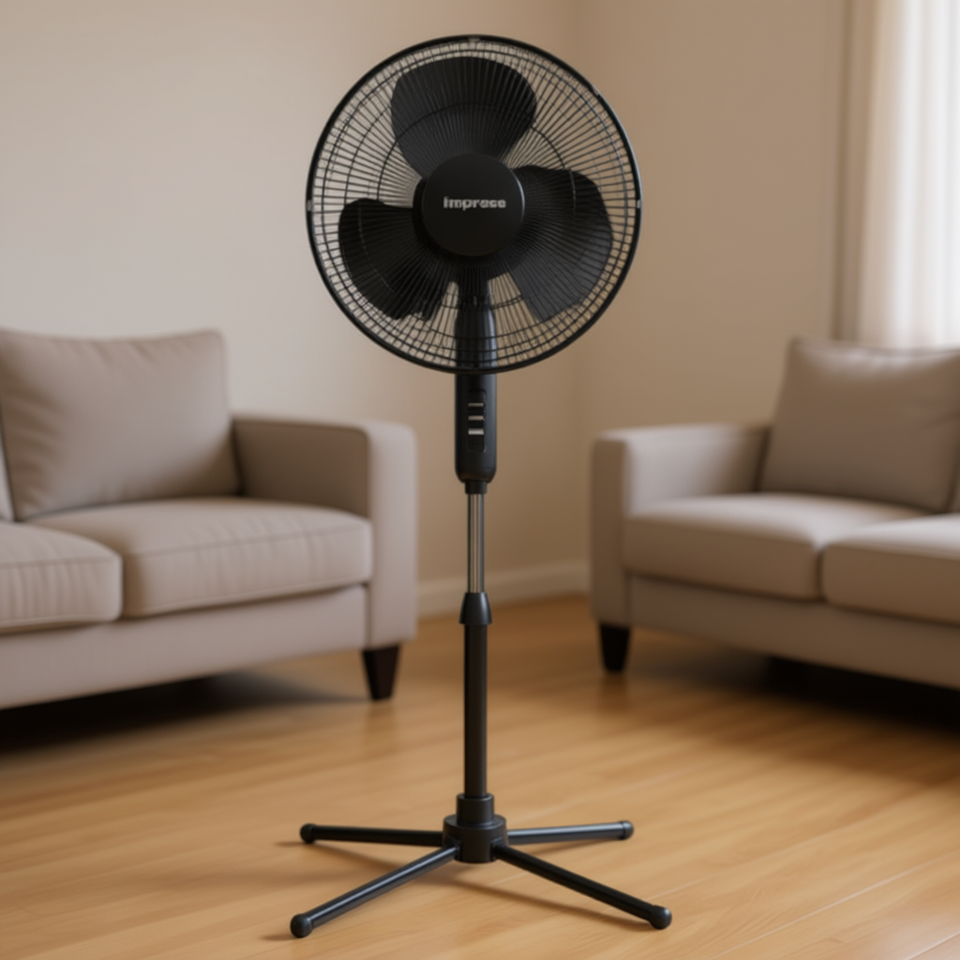 Ventilatore a piantana oscillante da 16 pollici Impress, nero, 3 velocità, per raffreddamento domestico