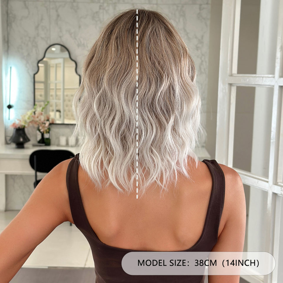 Parrucche da donna 16 pollici 7JHH Labo marrone tinta capelli ricci ondulati con frangia parrucca naturale per uso quotidiano Ombre grigio