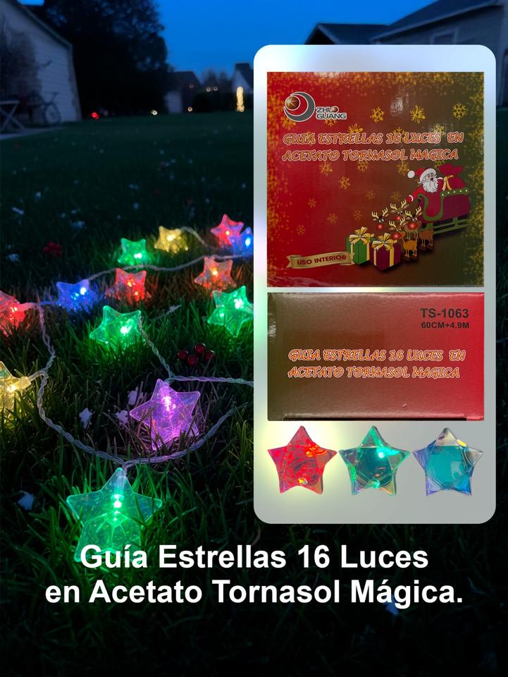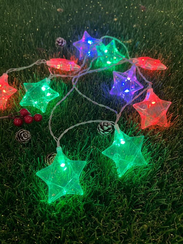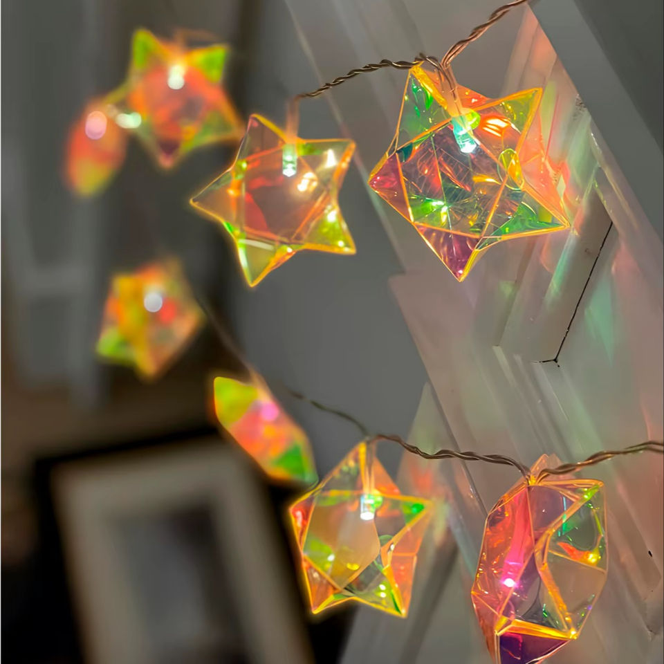 Luci a Corda con 16 LED Iridescenti a Forma di Stella in Acetato, Decorazioni Natalizie Impermeabili IP44, Materiale Plastico, Alimentazione AC 110V con Spina a Muro