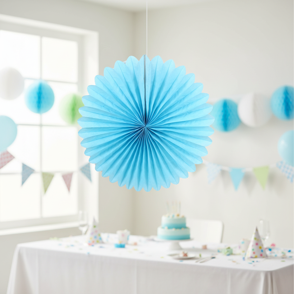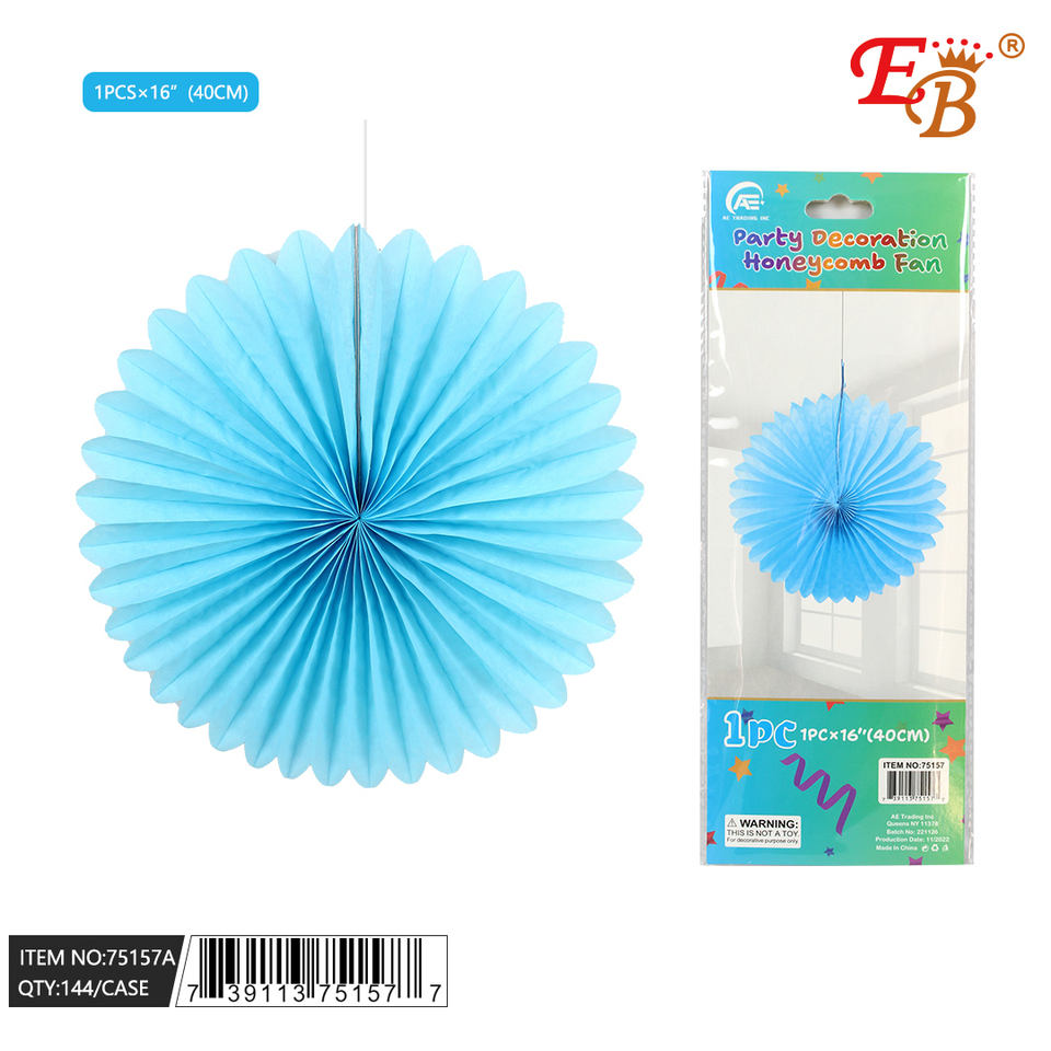 16" Light Blue Plastic Honeyscomb Fan 144PCS/CS for Birthday Party Decorations