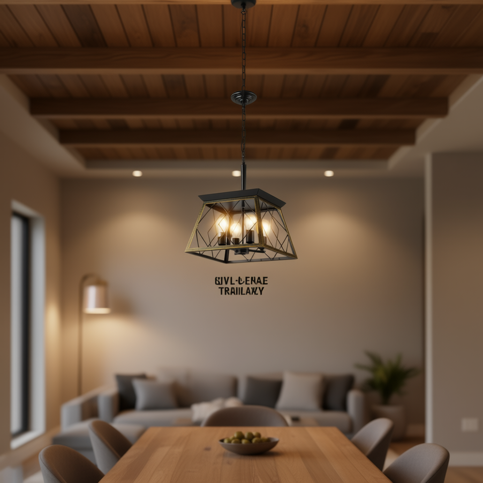 Lampadario Moderno a Gabbia Metallica Nero e Oro a 4 Luci Regolabile per Sala da Pranzo e Soggiorno
