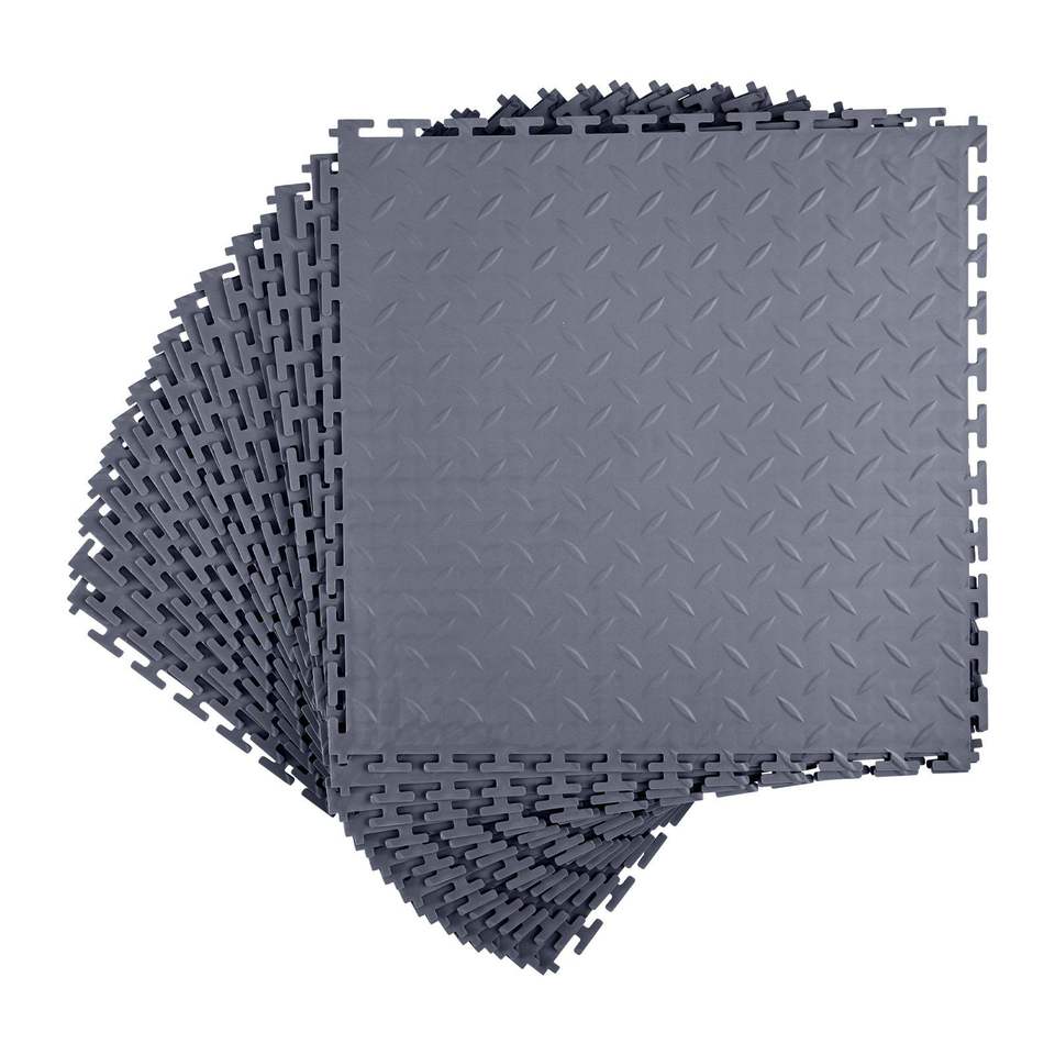 Set di 16 Piastrelle Modulari Incastrabili per Pavimenti di Garage 20,2 X 20,2 X 0,2 cm, Antiscivolo in Plastica con Superficie Diamantata