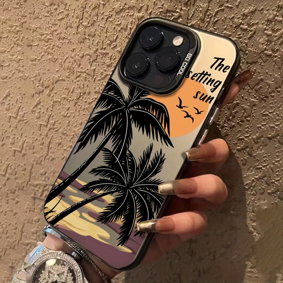Custodia per telefono a tema moto 16 Pro Max albero di cocco alla moda per Rock Pattern realizzata in resistente materiale TPU