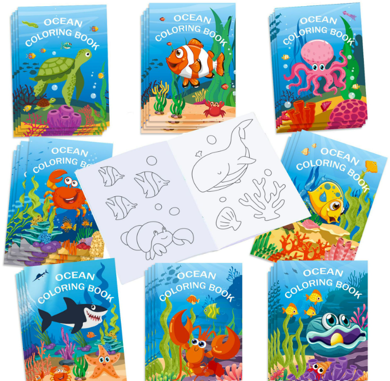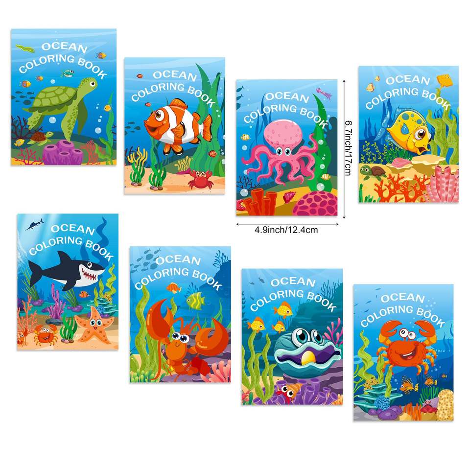 16 Units Underwater World Sea Creatures DIY Coloring Book Birthday Party Cartoon Colorful Doodle Painting Book Made Paper Offset