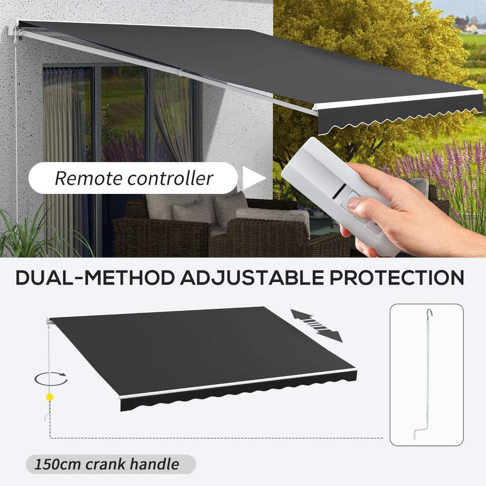 Tenda da Sole Elettrica Retrattile Nera 16 X 10 per Terrazza, Balcone, Giardino con Telecomando e Manovella
