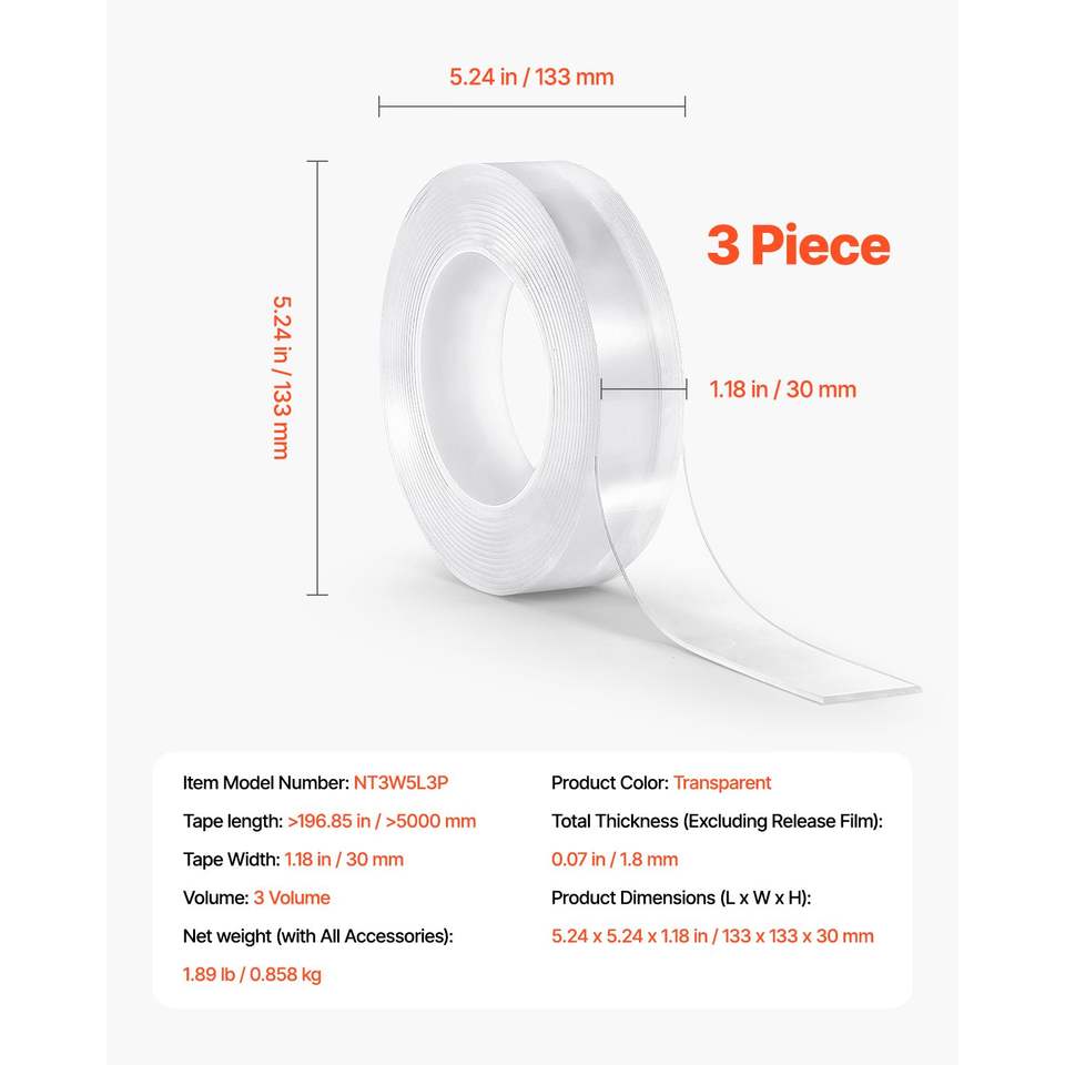 Nastro Biadesivo Nano Ultra Resistente da 16 Piedi - Confezione da 3, Adesivo Forte Riutilizzabile, Nastro Trasparente Rimovibile per Decorazioni Murali