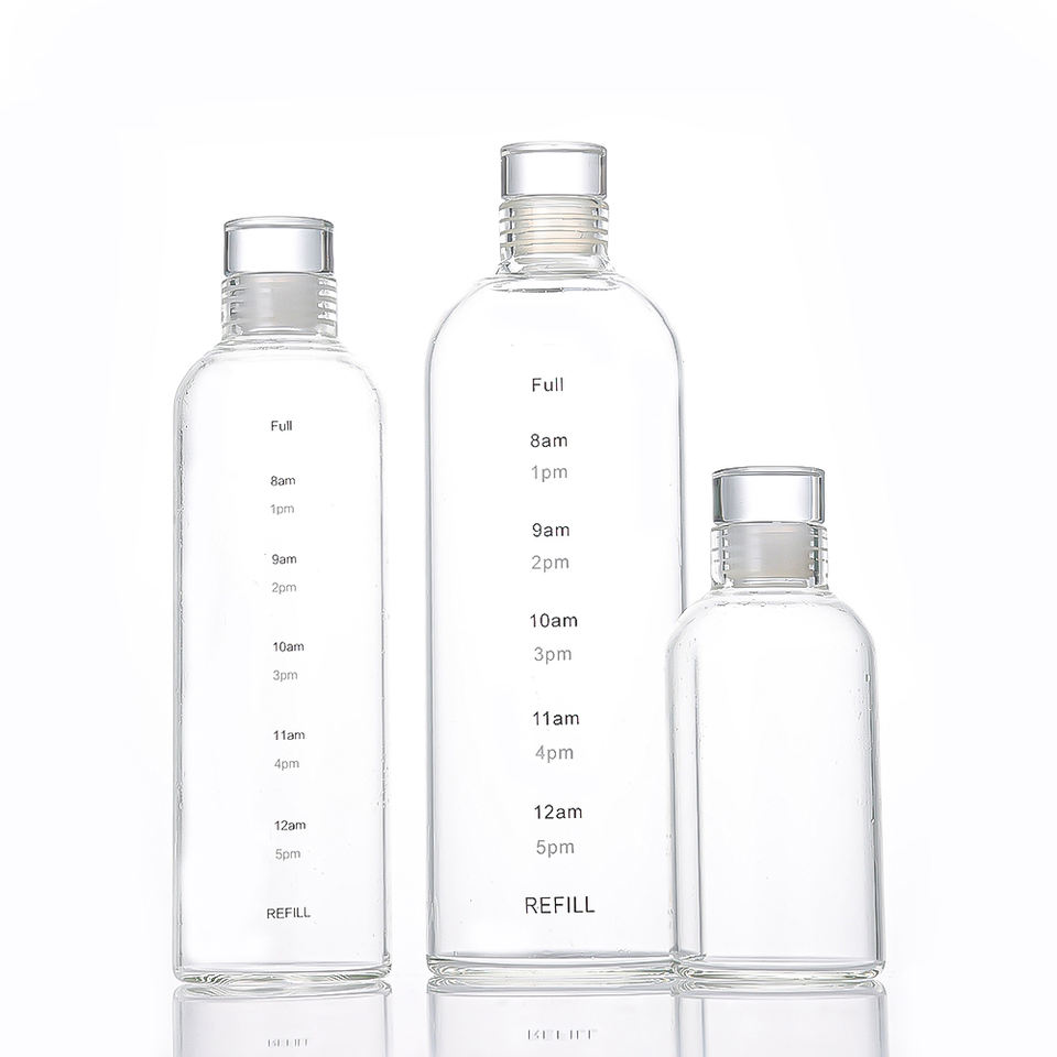 Borraccia borosilicato alto vetro motivazionale con indicatore di tempo