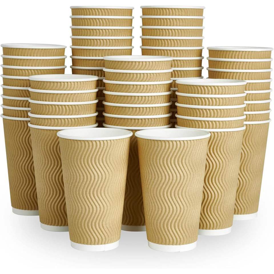 Bicchieri di Carta Isolati a Parete Ondulata da 16 oz, Confezione da 90, per Caffè Caldo e Bevande, Bicchieri di Carta Resistenti