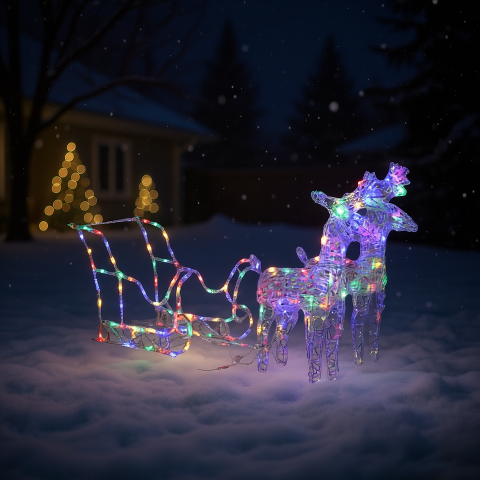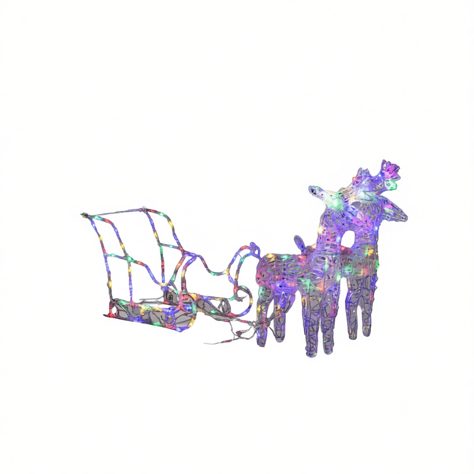 Renna e slitta natalizie gonfiabili in acrilico per decorazioni esterne multicolore da 51,2 pollici