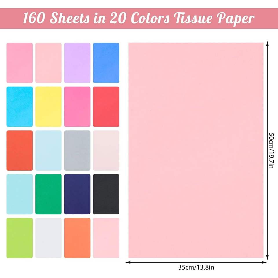 160 Fogli di Carta Velina Colorata Pastello 20 X 14 Pollici in Confezione Grande per Sacchetti Regalo di Halloween e Natale, Confezioni e Lavori Fai-da-Te