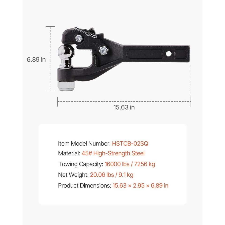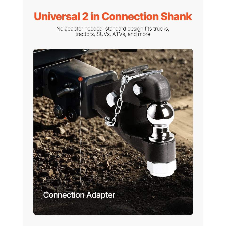 Gancio di traino con capacità di carico di 16000 libbre, combinazione gancio ricevitore da 2 pollici e sfera di traino da 2 pollici per 2 ganci di traino