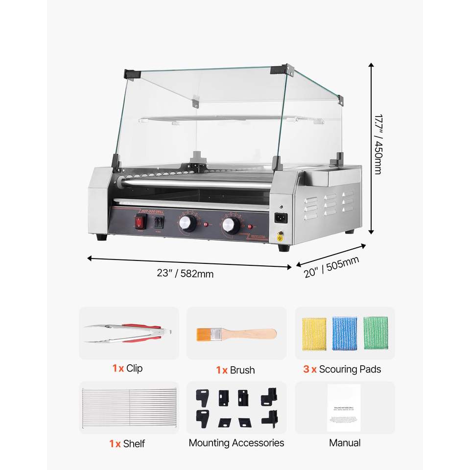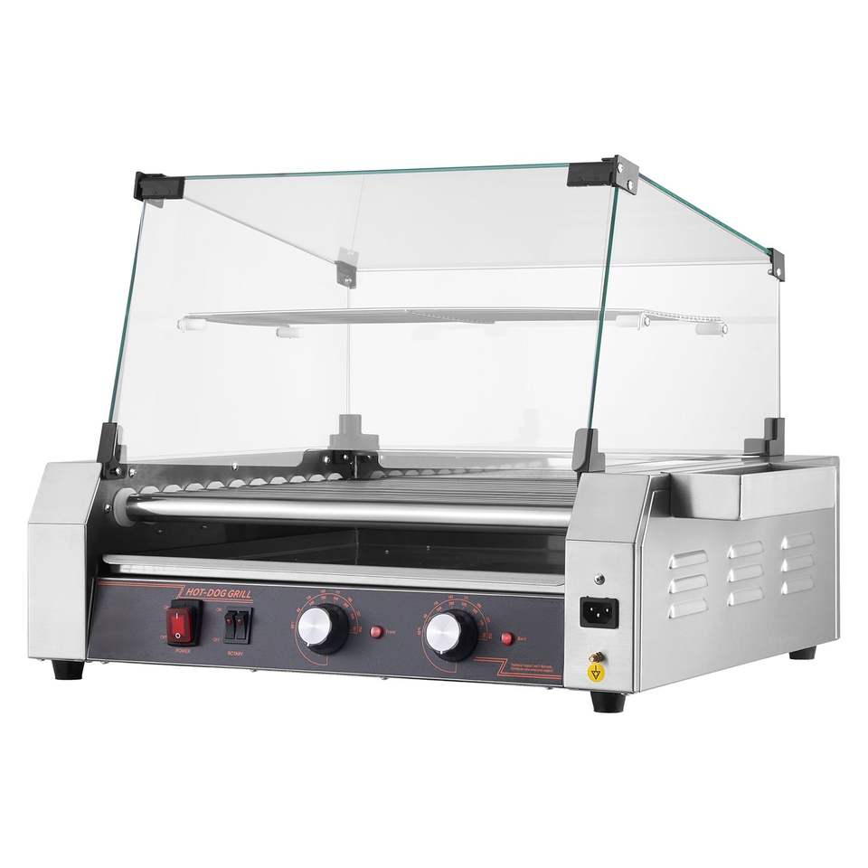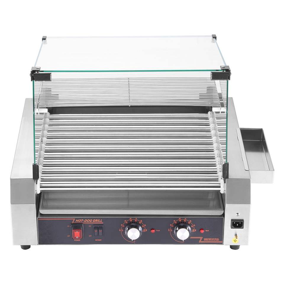 Macchina per Hot Dog Commerciale da 1600W, Cuocitore a Doppia Temperatura, Griglia per Salsicce in Acciaio Inox con 30 Rulli, Cuocitore per Hot Dog a 11 Rulli