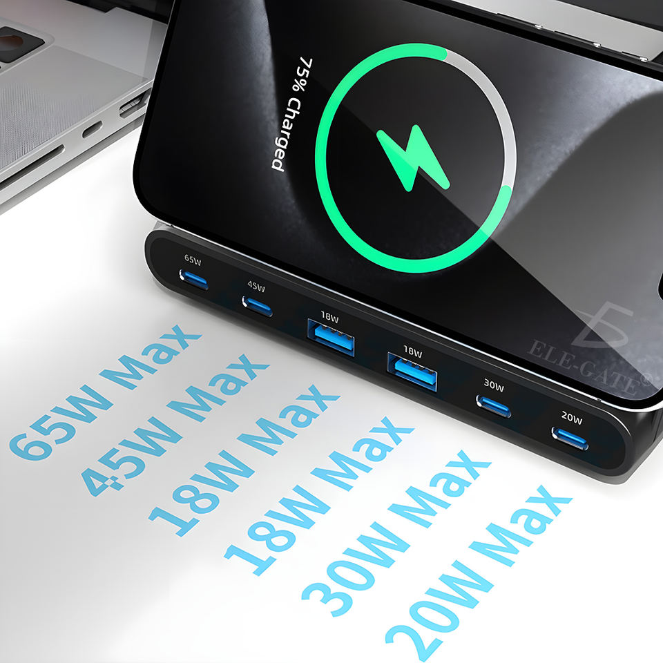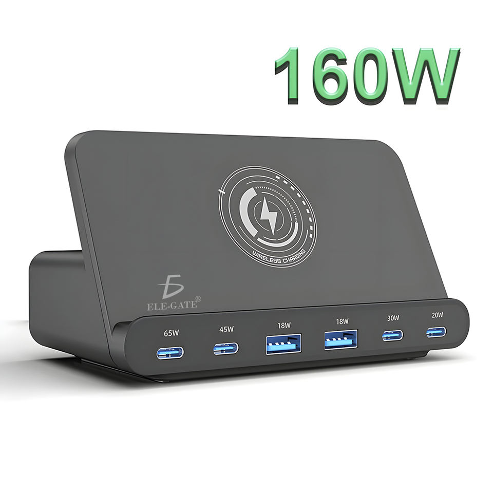 Caricatore Wireless da Scrivania 7-in-1 da 160W per Cellulari e Laptop, 6 Porte di Ricarica, 2 USB, 4 Type-C, in Materiale PC con Lampada per Casa