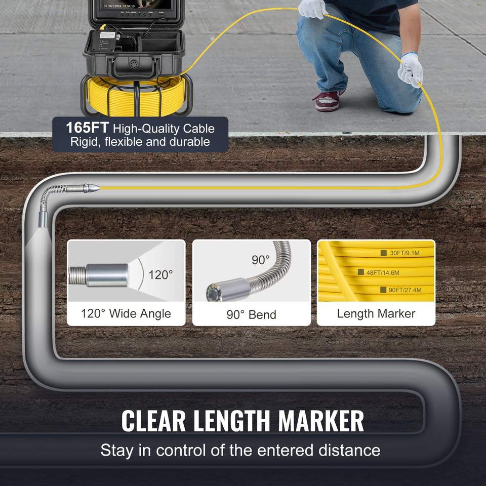 Telecamera d'Ispezione Industriale per Tubazioni da 165 Ft/50m, Autolivellante, Schermo HD 1080P da 9 Pollici, Zoom 36X, Impermeabile IP68, per Fognature e Impianti Idraulici