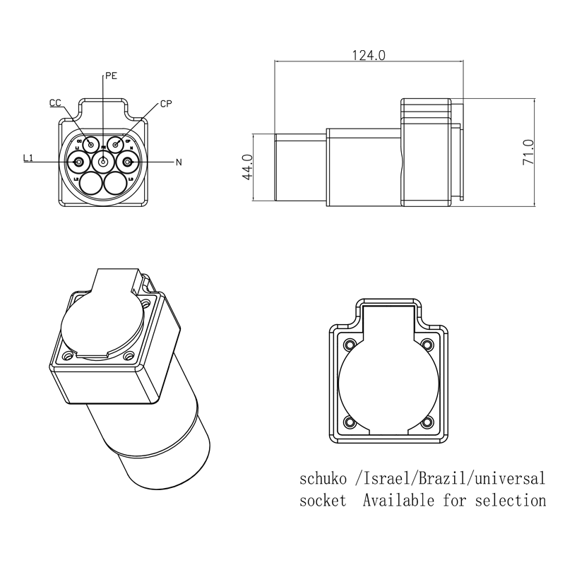 Adattatore di ricarica spina 16A tipo 2 evse Type2 spina a presa di ricarica Schuko per stazione di ricarica