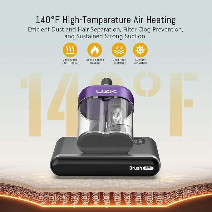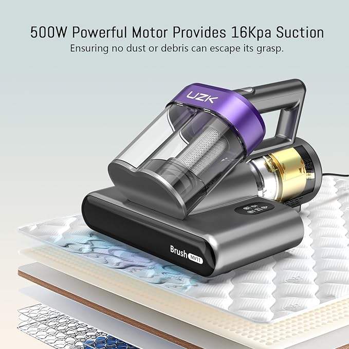 16Kpa Powerful Handheld Vacuum Cleaner with UV-C Light Double Dust Cup and High Heating for Mattress Bed Vacuum Cleaning