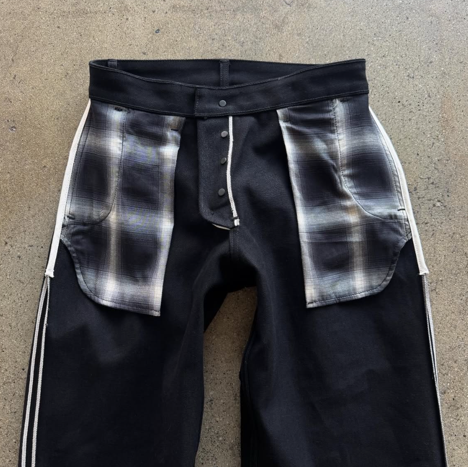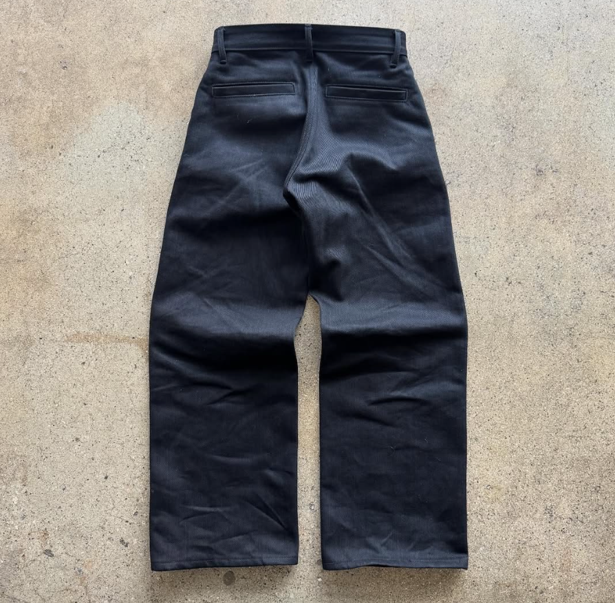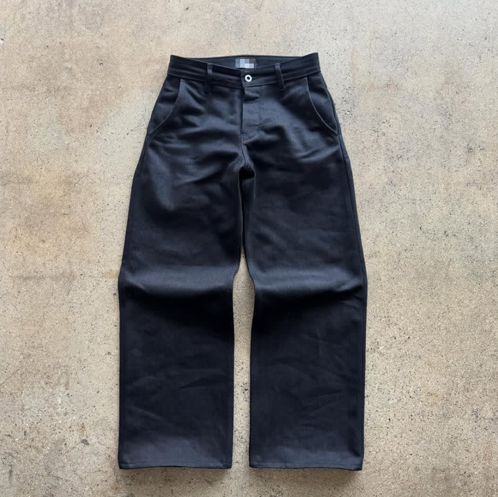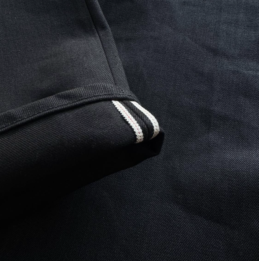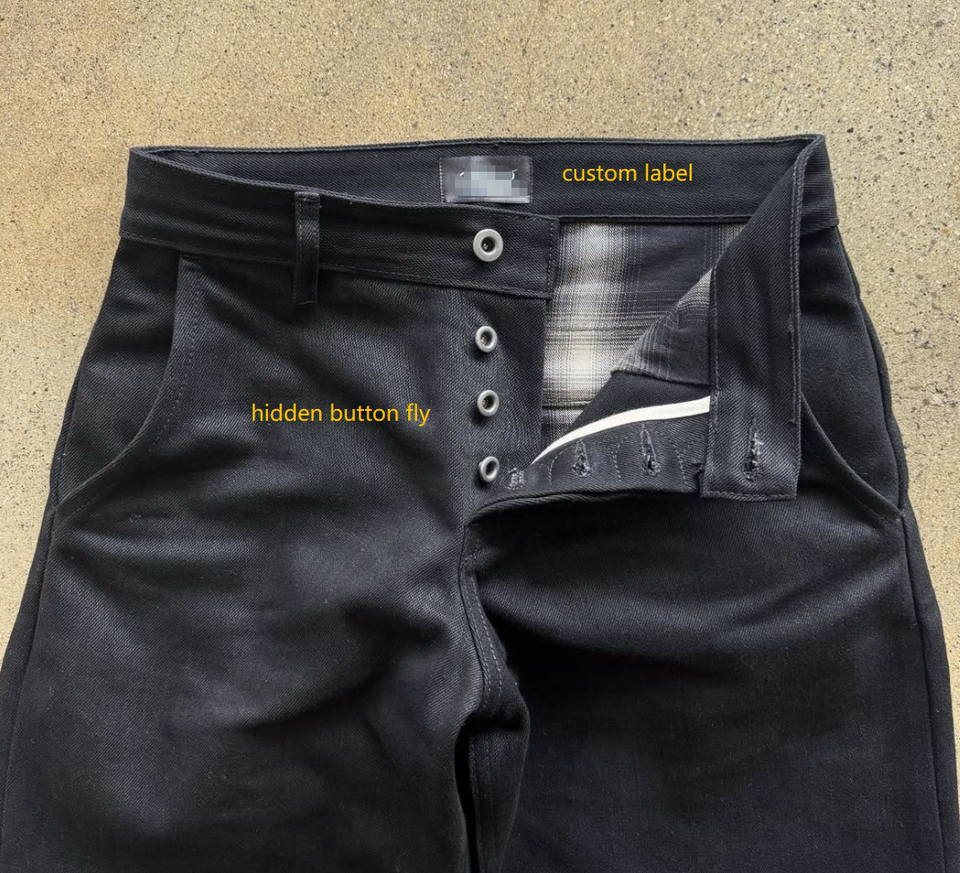 16OZ Black Red Selvedge Denim Men's Straight Fitting HR Button-fly Stitch Chain Stitch Hem Vintage Raw Denim Wide Leg Sihouete