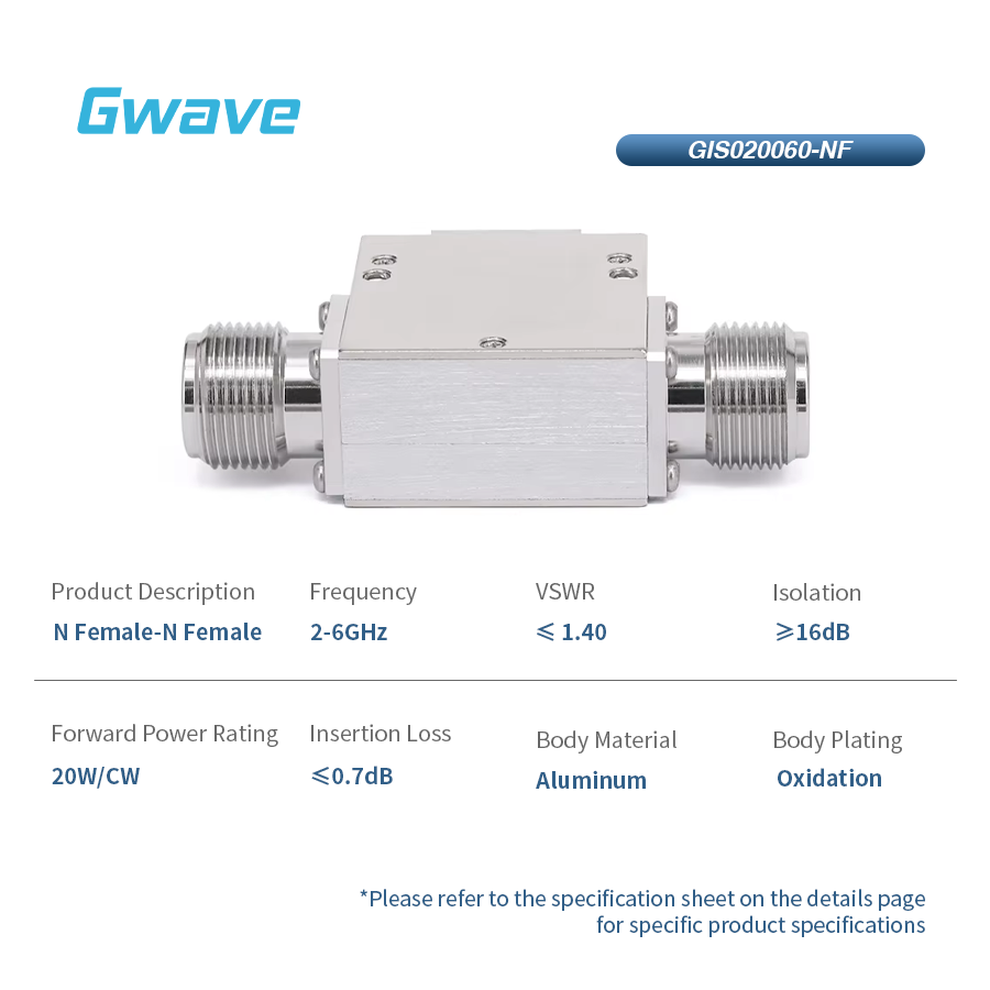 Isolamento 16dB da 2-6GHz, 20 watt e N femmina