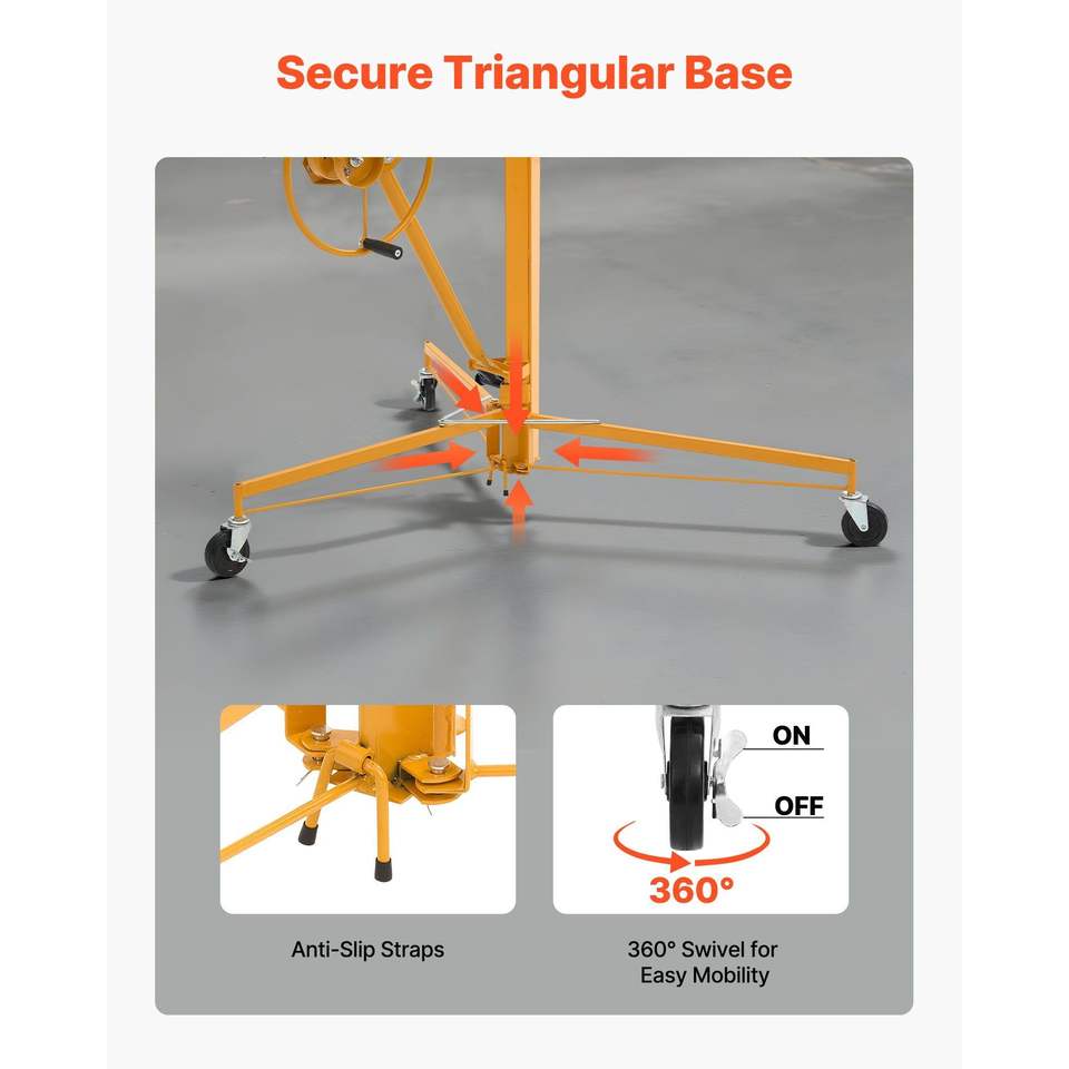 Sollevatore per Cartongesso da 16 Piedi, Capacità 150 Libbre, Braccio Telescopico Regolabile, Ruote Bloccabili, per Costruzioni
