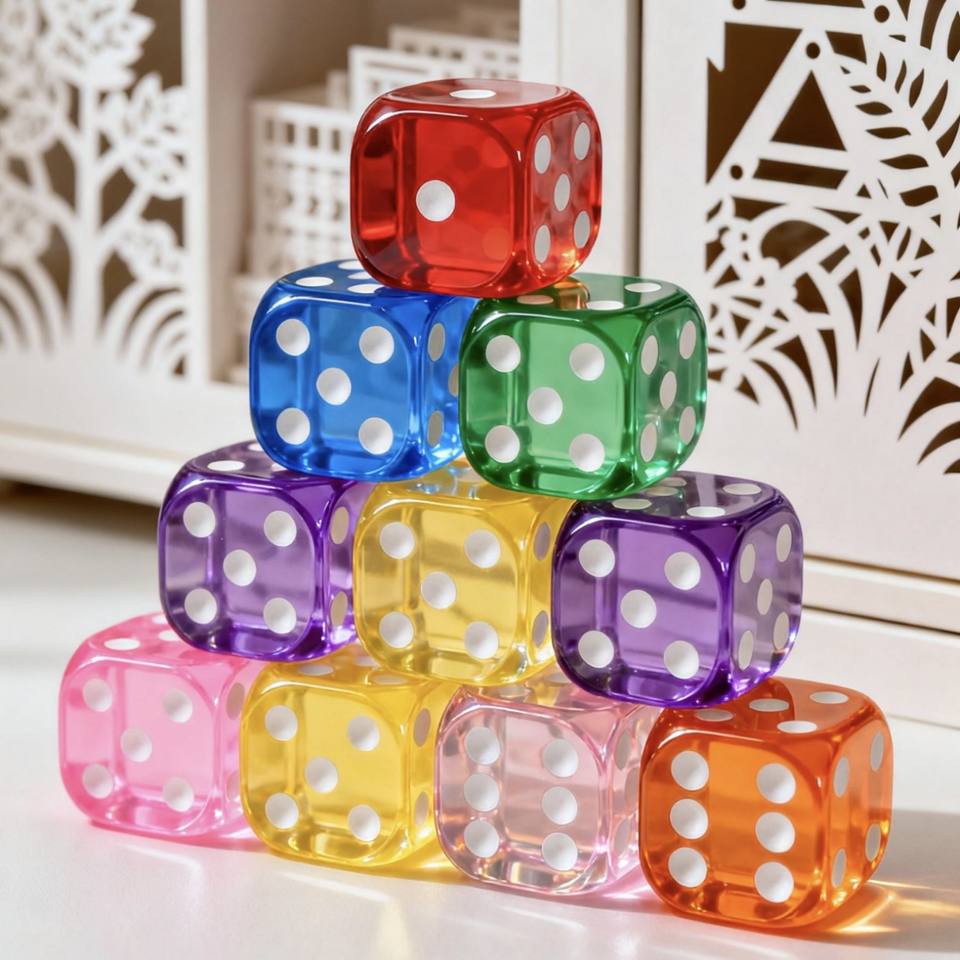 Dadi in Acrilico Trasparenti Colorati da 16mm con Angoli Arrotondati e Punti per Giochi da Tavolo, Intrattenimento Educativo