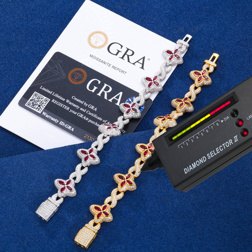 16mm Iced Out Four Leaf Clover Bracelet White Gold 925 Sterling Silver VVS Moissanite Diamond Fine Jewelry for Men Women