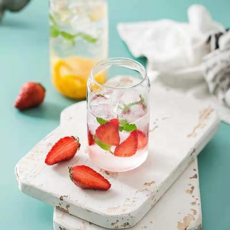Bicchiere a Lattina di Birra da 16oz in Vetro Borosilicato Trasparente per Bevande, Caffè Freddo, Tè, Acqua con Coperchio e Cannuccia