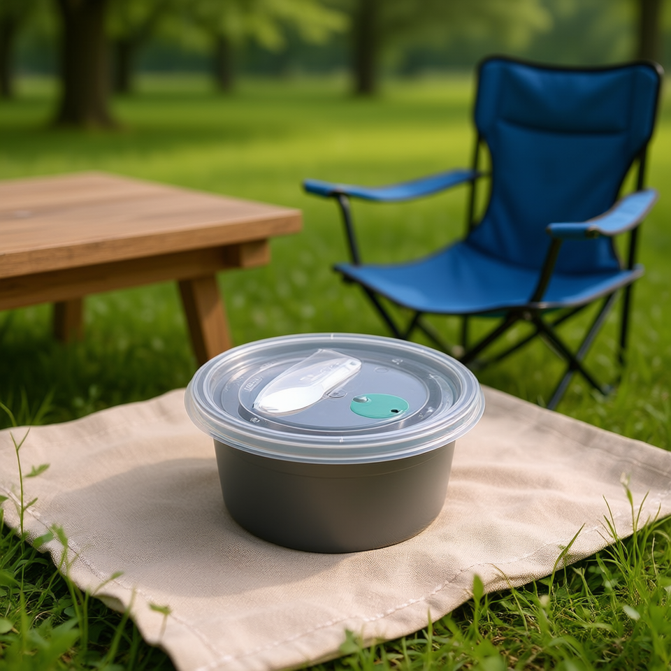 16oz PP Round Base Food Storage Container with Vented Lid & Spork for Home & Outdoor Use