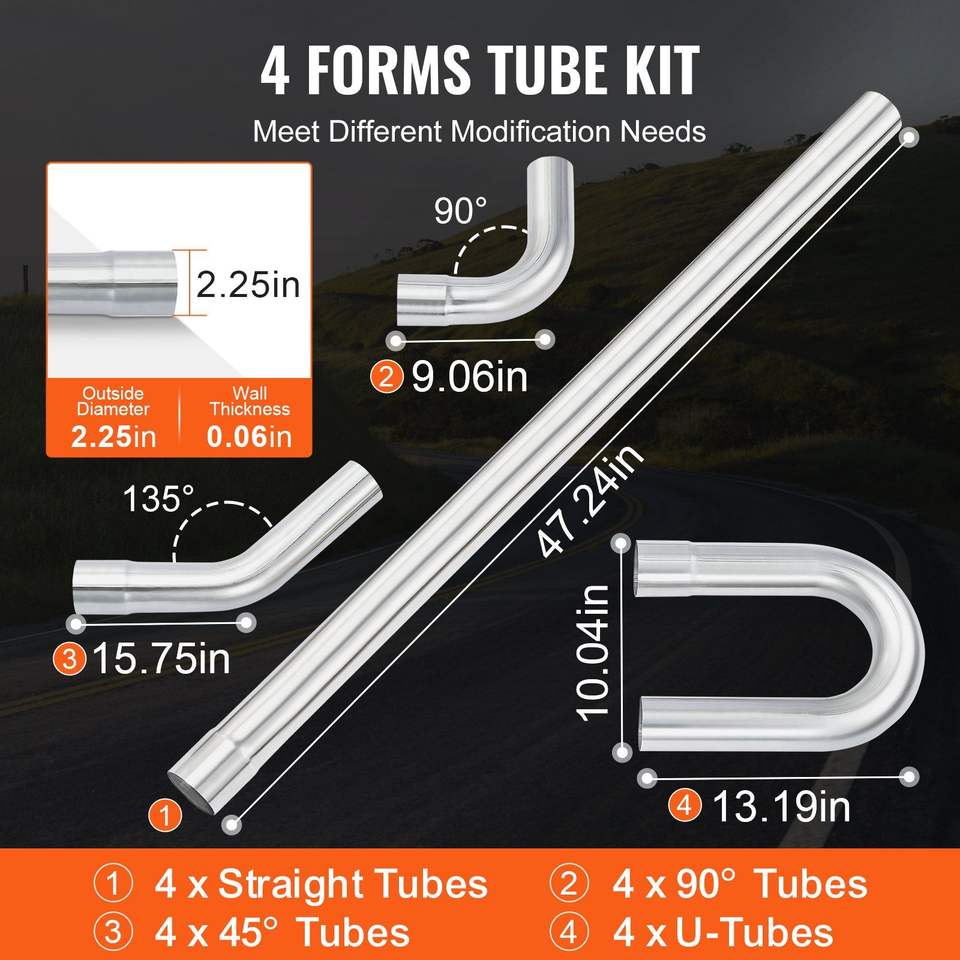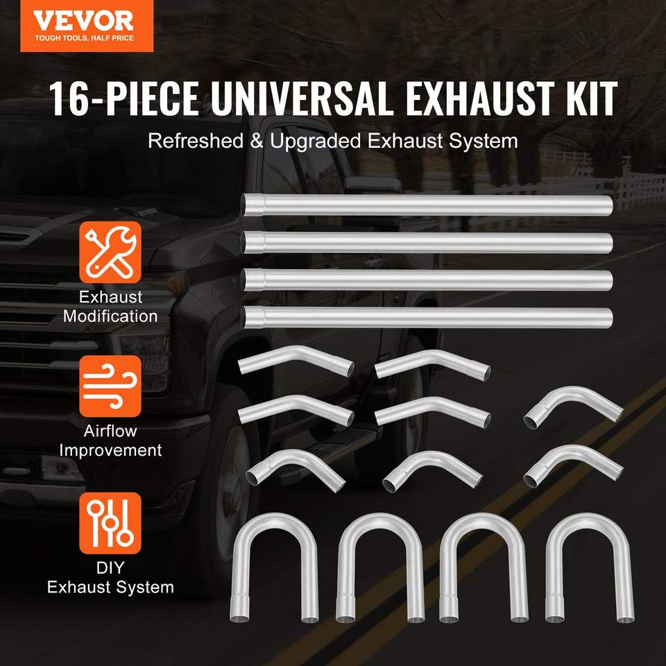 Kit di Scarico Universale in Acciaio Zincato da 16 Pezzi, Tubo di Scarico Grande Antiruggine con Giunto a Innesto Rapido, Sistemi di Scarico Tuning