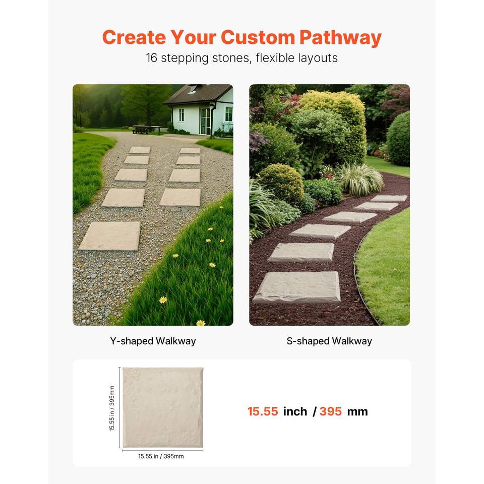 Set di 16 Pietre Decorative in Plastica Resistenti alle Intemperie 15,5 X 15,5 Pollici, Pietre per Giardino e Sentieri