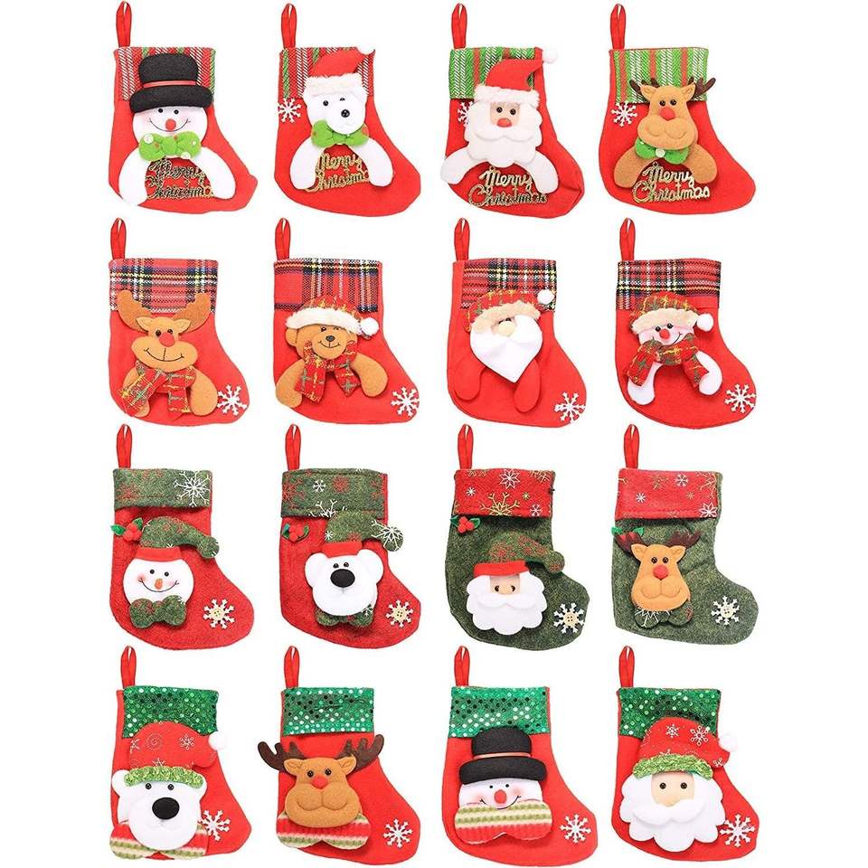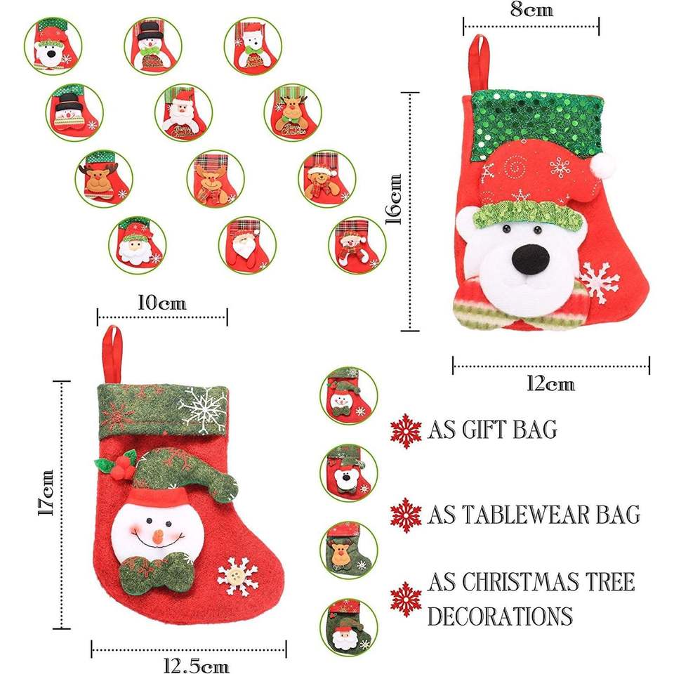 Set di 16 Mini Calze Natalizie 3D con Babbo Natale, Pupazzo di Neve e Renna, Porta Posate e Calze Decorative da Appendere all'Albero