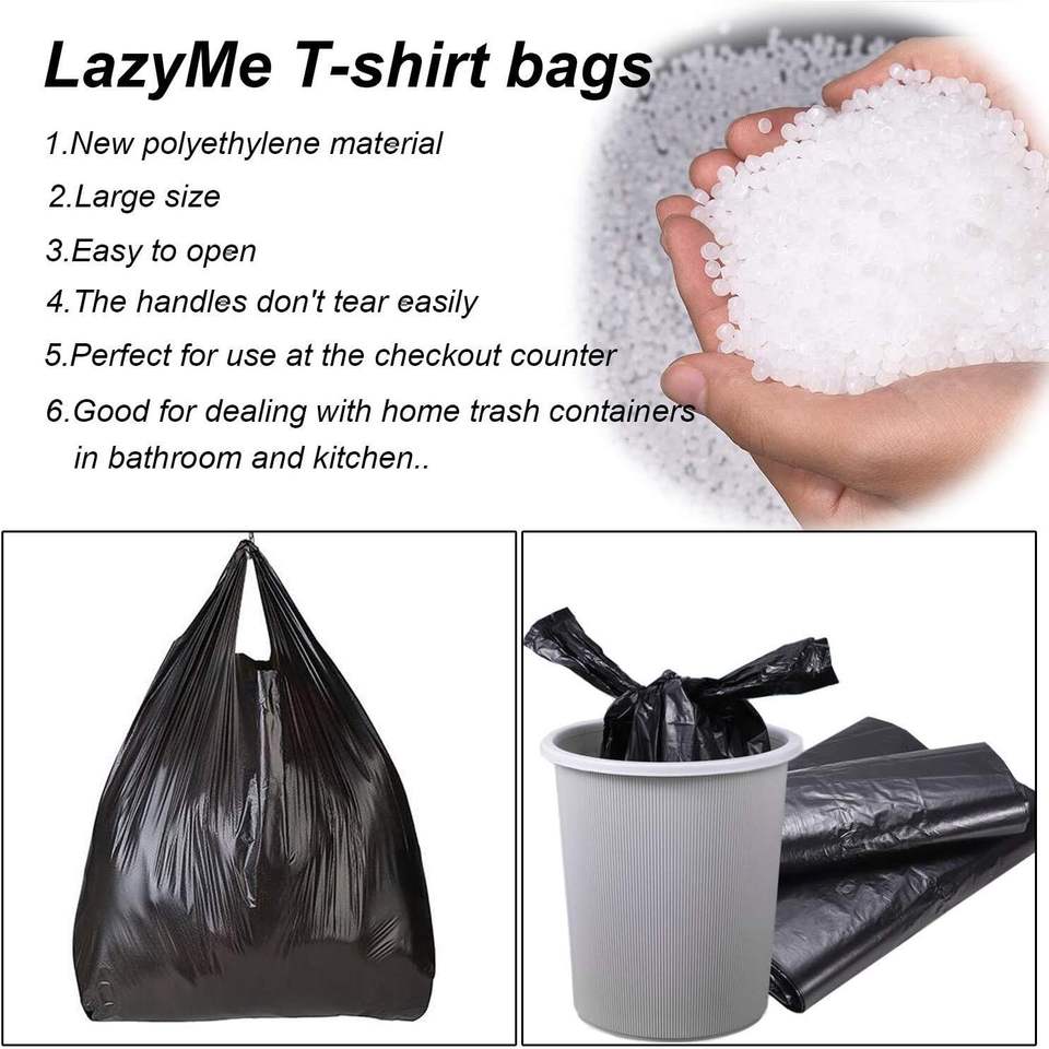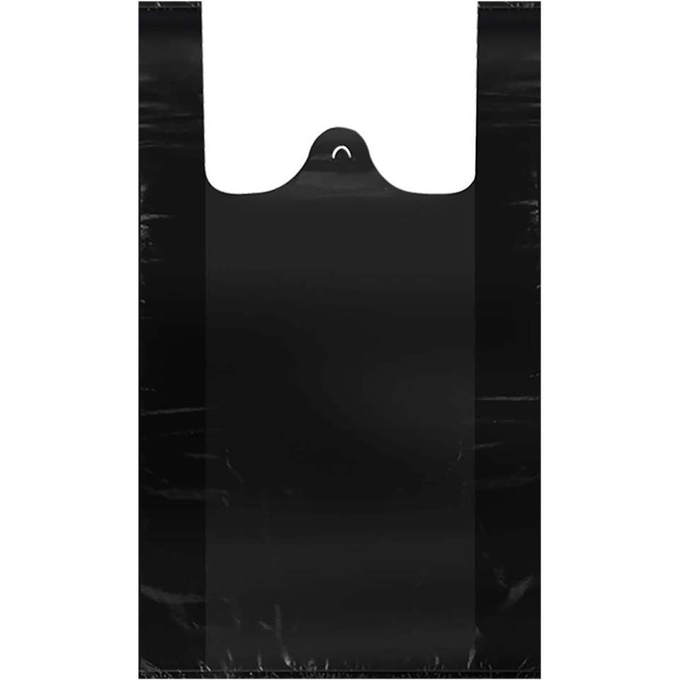 16x23 Inch Black Plastic T-Shirt Bag Grocery Bags with Handles in Bulk for Business Bolsas De Plastico 100 Pcs