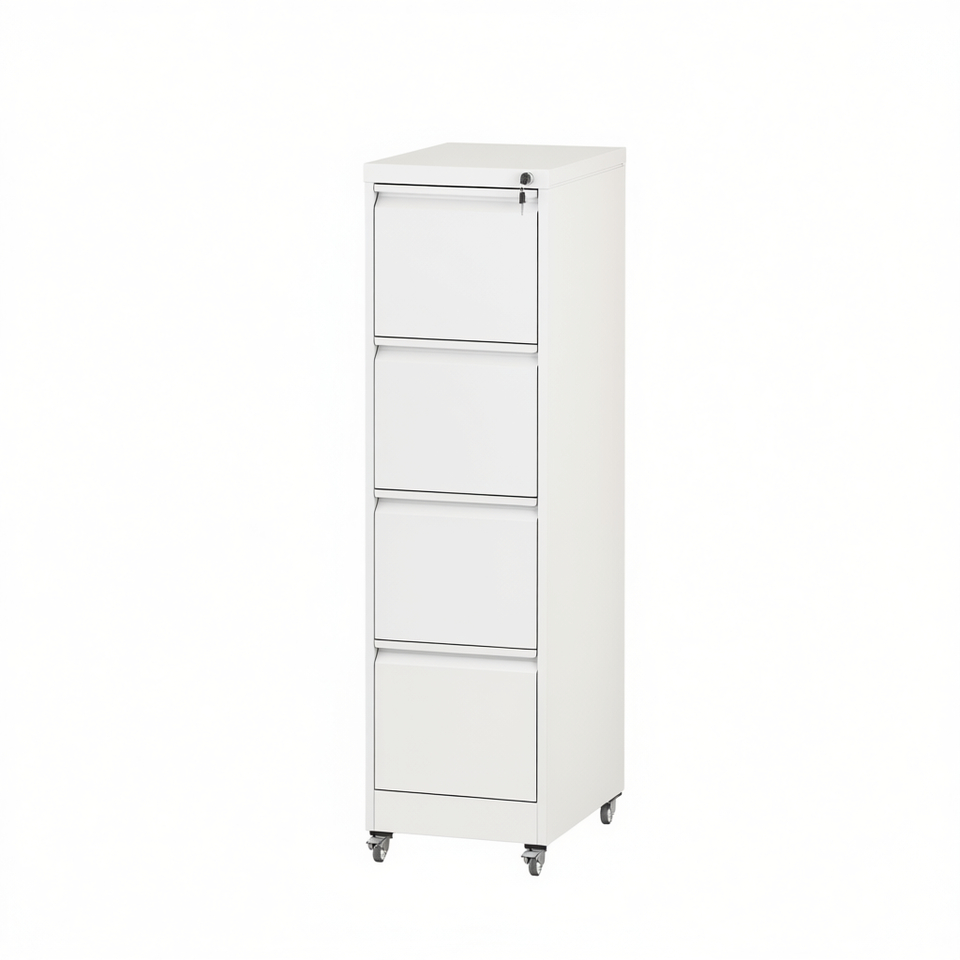 White Metal File Cabinet 4 Drawers Lockable Heavy Duty Mobile Vertical Office Filing Cabinet for Home Office Commercial Use